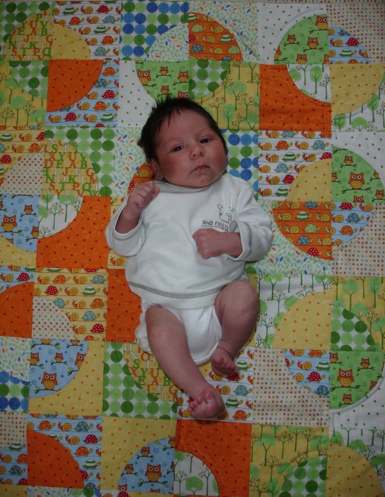 You may recall that I recently shared with you my first baby quilt that I created for the eagerly awaited Harvey. Well on Sunday I finally got around to delivering it to him. And as you can see, he is delighted :)
